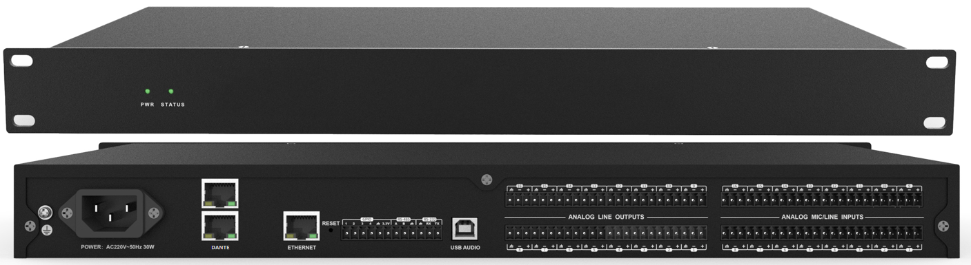 输出通道最大电平 + 15dBu,总谐波失真加噪声(THD+N)<0.02%,最小固定延时<2ms