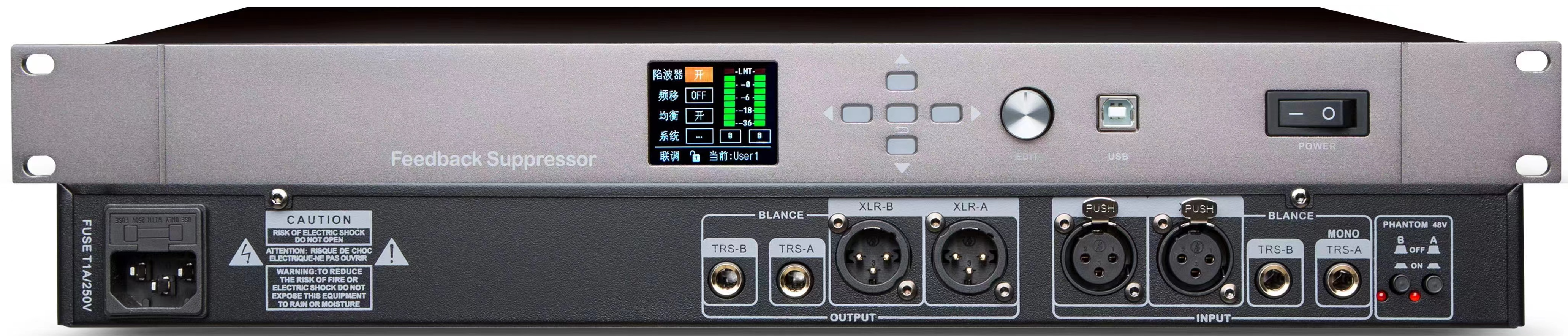 每通道配置 24 个自动陷波器,工作频率覆盖 20Hz~20kHz,可自动扫描并抑制啸叫频率点,静态锁定点数量支持灵活设置