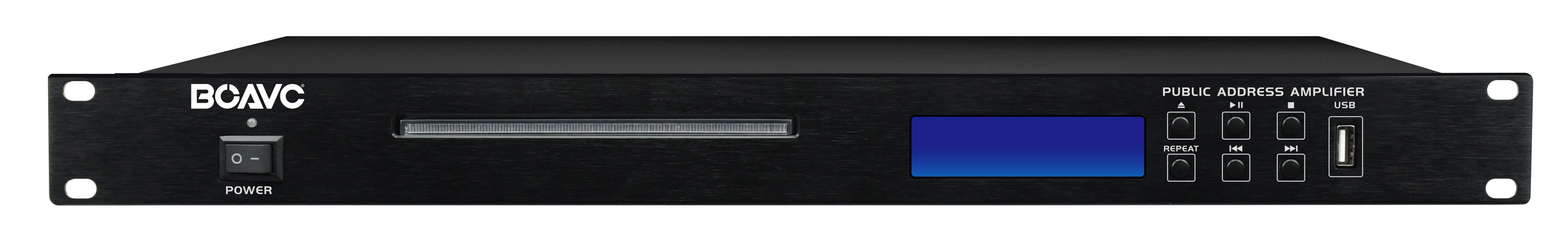 查看大图彩页下载产品下载相关下载 产品特点1.采用进口数码机芯,具有超强电子抗震功能,设有高亮度动态VFD荧光显示,清晰醒眼;2.支持CD, VCD,DVD, MP3音频格式,可外接USB盘播放MP3音乐,2路音频信号左右声道输出,输出频响范围为20~20KHz;3.设有轻触式按键操作,可选择单曲播放.全部播放.单曲循环.全部循环.停止播放等功能,配有遥控控制; 4.1U标准机箱设计,铝合金面板,美观实用;5.箱体尺寸485*44*250mm;6.电源功耗为15W; 系统图 安装图